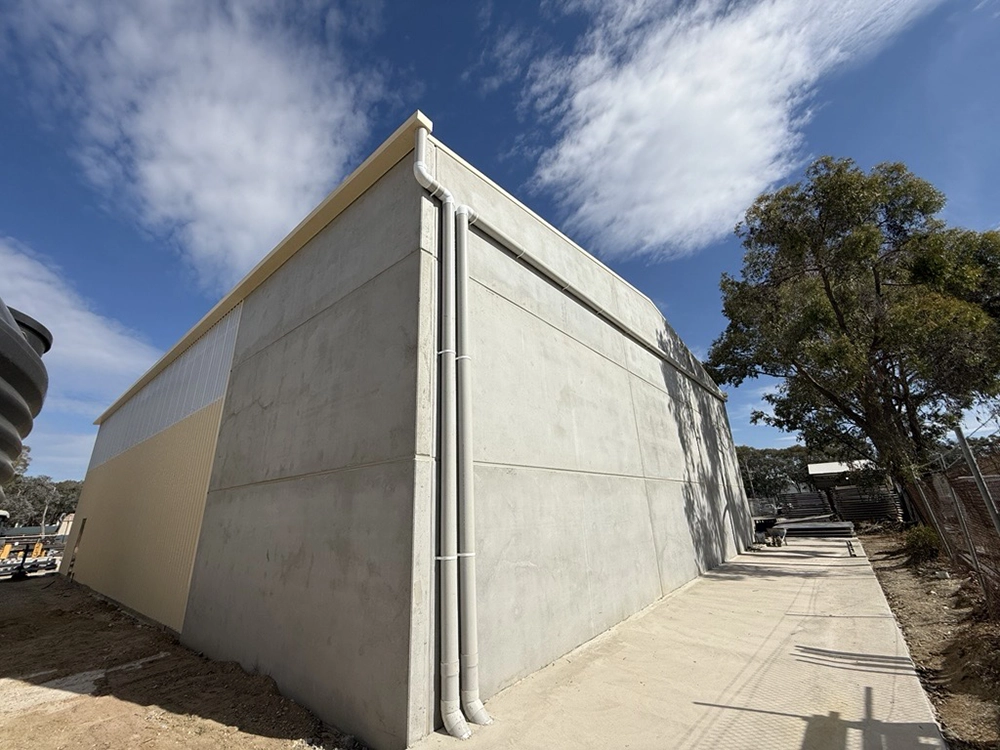 Key works included coordination of the Building Permit and Construction Certificate, full civil groundworks and drainage, and construction of a slab-on-ground with piered foundations. The structure comprised installation of structural steel and precast concrete panels, with site logistics and craning operations carefully managed to meet safety and scheduling requirements.