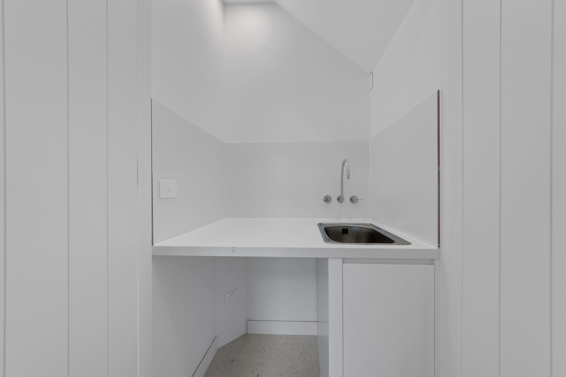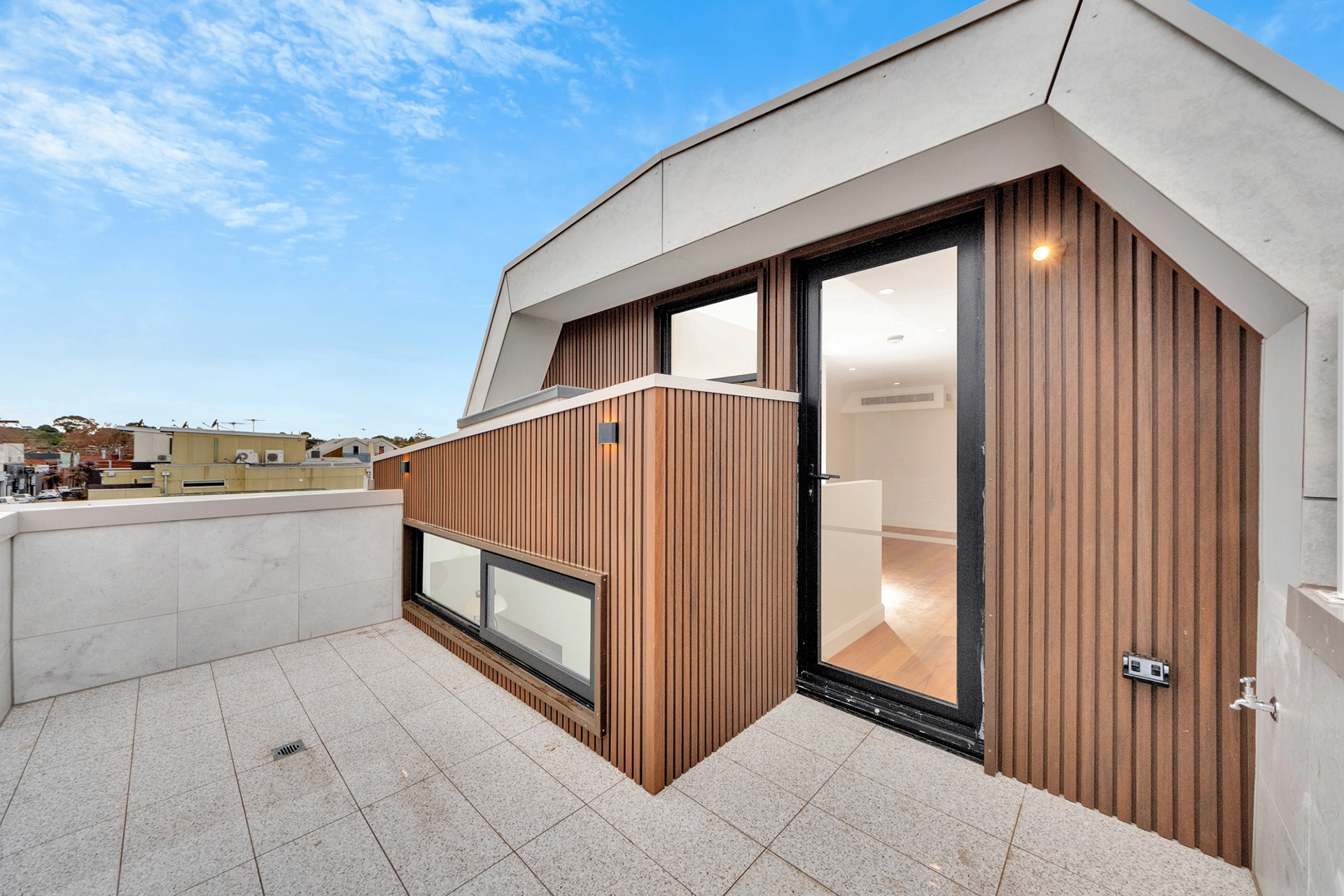 This striking three-storey residence was designed and constructed to embody Richmond’s gritty charm and urban sophistication. Set within the suburb’s industrial estate, the home boasts a refined industrial aesthetic from the outside, using exposed brick, steel accents, and bold geometries that blend seamlessly into the vibrant street culture.